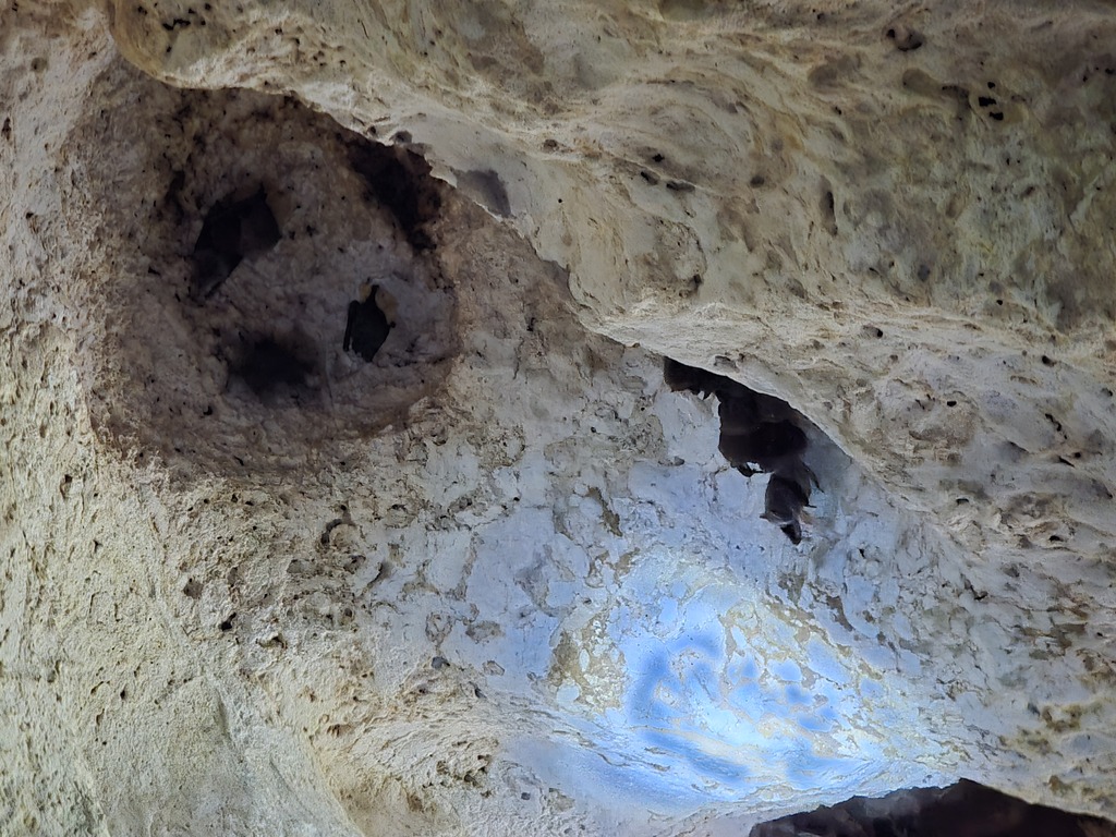 Byliśmy w jaskini, super. Pierwszy raz w życiu jaskinia parterowa, gorąca, wilgotna, pełna komarów. I nietoperzy. Kolonie rodzinne po 15-20 sztuk.