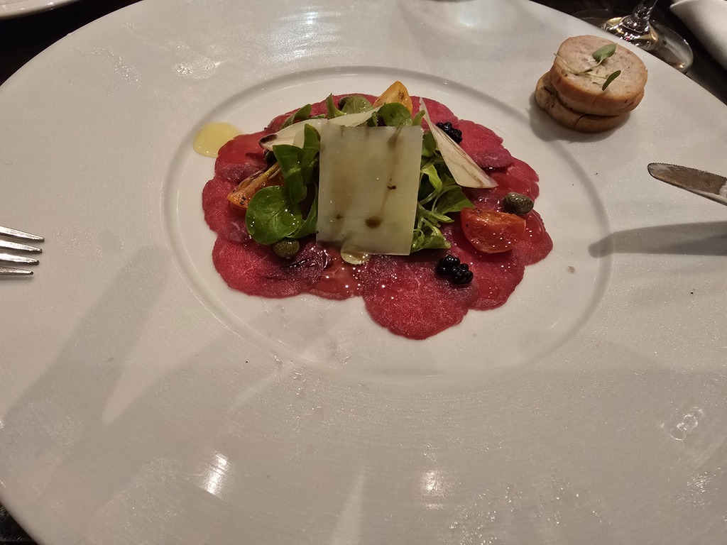 Carpacio było przystawka, ja wzięłam jeszcze sałatkę cesar, podzieliłam się z mężem.