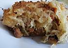 Cos podobnego ostatnio miałam na obiad, plasterki ziemniaka i cukinii, ale tu chyba cos innego, czyżby bakłażan? Dodaje też moje świeżo pieczone chlebki :)