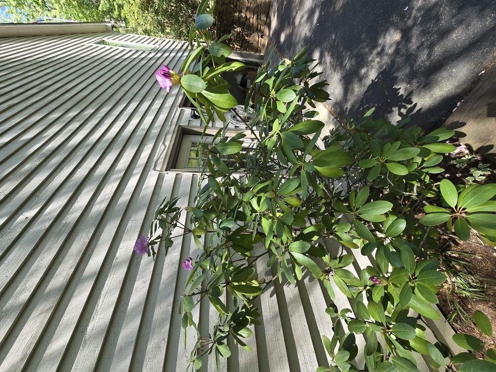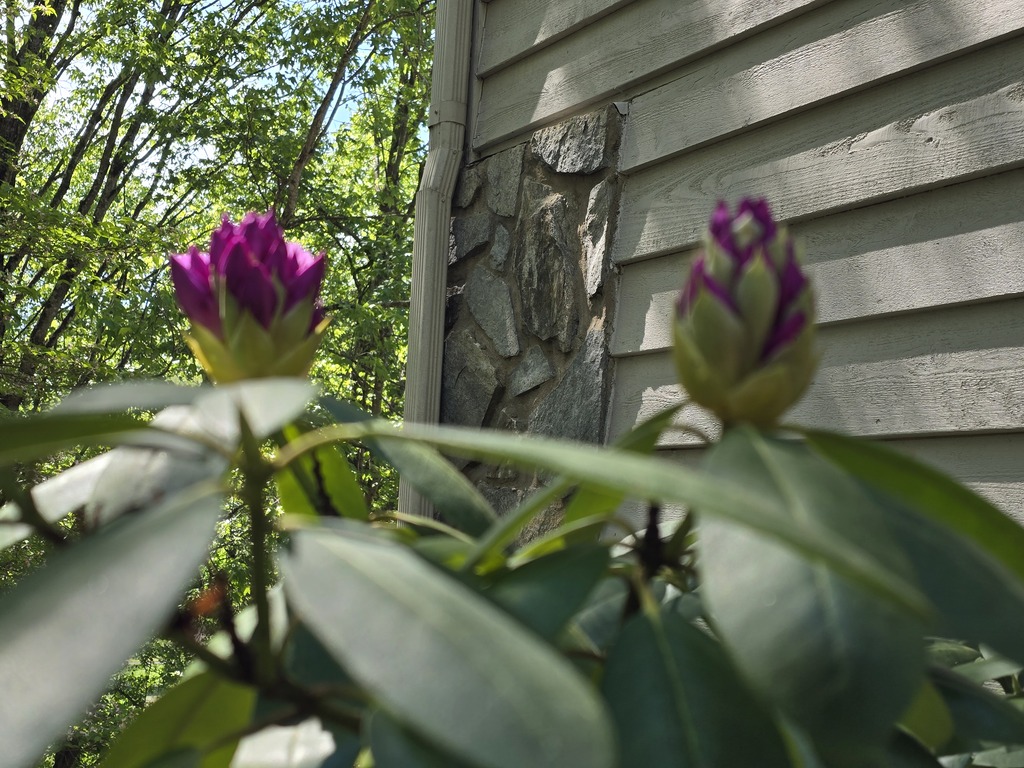 A tak mnie wczoraj rano powitał rododendron przy drzwiach.