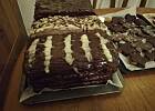 2.delicje pomarańczowe luźno ułożone, zasypane grubo mieszanką zmielonych orzechów, migdałów, groszków czekoladowych, budyniem czekoladowym i zalane sokiem pomarańczowym.