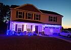Amerykańskie sztuczne choinki kupuje się już ze światełkami, także jak ktoś nie chce bombek, to ma gotową choinkę, tylko złożyć i połączyć kable. Wszystkie światełka, na choince czy do dekoracji luzem, mają z jednej strony wtyczkę do kontaktu, a z drugiej gniazdko, żeby następny segment dołączyć. Zdjęcie jest z poprzednich lat. Krzaki i kolumny są połączone światełka do światełek, w sumie 6 zestawów. Garaż był na osobnym przedłużaczu,