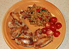 Ćwiartki z kurczaka pieczone na ryżu. Pyszne