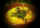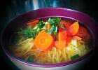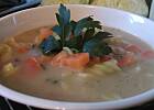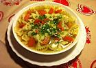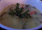 Zupa z serków topionych z pieczarkami i zacierką, na drugie- bigos z pieczywem.