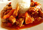 Zupa grzybowa, na drugie- kurczak w sosie słodko- kwaśnym z ryżem.