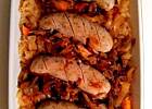 schab zapieczony w borowikowym sosie do makaronu był podany