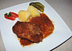Niedziela - pierś z kaczki w czerwonym winie, ziemniaki i surówka z czerwonej kapusty