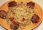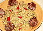 Dziś: Pęczotto z Warzywami i kulkami z białej kiełbaski -dla mnie, a dla moich panów z pełnowymiarowymi mielonymi;)