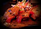 dzisiaj wątroba indycza z chlebem i naleśniki z serem i brzoskwinią