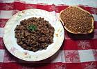 Żeberka wieprzowe duszone, pęczak z sosem pieczarkowym, surówka z kiszonej kapusty :)