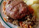 Rosół z makaronem, kotlety mielone z indyka z pieczarkami i serem, kopytka i buraczki.