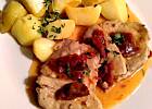 Szynka wieprzowa pieczona, ziemniaczki i dwa sosy do wyboru: pieczarkowy i cebulowo-śliwkowy, surówka z kiszonej kapusty :)