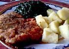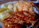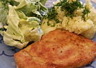 Na szybko: biust w panierce, puree i sałata ze śmietaną.
