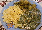 Spaetzle z sosem serowo - szpinakowym oraz z filetem z kurczaka ;)