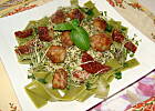 Mini pulpeciki cielęce, szpinak cytrynowo-serowo-śmietanowo-czosnkowy z pomidorem suszonym i makaron. Oczywiste , że obowiązkowo piri-piri , ufffff piekielna siła
