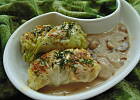 Filet z piersi kurczaka z papirusa [po mojemu :)],ziemniaki,sałata ze śmietaną i szczypiorkiem,surówka z kiszonej kapusty.