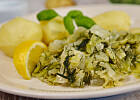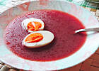 Botwinka z jajkiem i młodymi ziemniaczkami.