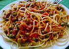 U nas było spaghetti z sosem.... na winie, ale bez wina, tylko z tego co się nawinie pod rękę, bo znalazłam jakąś pieczarkę i resztę mieszanki meksykańskiej i trochę mielonego z szynki, no wszystko trzeba zjeść, bo do reszty spleśnieje ;).