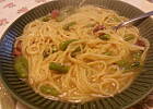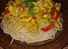 Wczoraj ziemniaki ,gołąbki w sosie pomidorowym ,ogór kiszony.Dzis spagetti z kurczakiem curry ,pieczarkami ,papryką