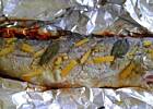 Pierogi zwyczajnie odsmażane na grillu, ale działa to ;). Koło pstrąga było zwyczajnie bardziej brzydko, gdyż Ślubny swoją rybę wyjął z foli i porzucił ją obok mnie, bo ja ponoć zawsze mam "po drodze" do kosza .