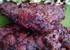 Przed grillowaniem skrapiam odrobiną oleju i przyprawiam ( zioła, gorczyca, ostra papryczka i tym razem kminek, ale ostatni raz, bo nie cierpię kminku i musiałam go zeskrobywać ) i zostawiam w pudełku na noc, a potem na grill.