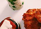 Kurczak alla romana, wiezyczki z baklazana i mozzarelli ( przepysznej, prosto od malego, swietnego producenta z Neapolu...smak niesamowity), ryz basmati ze szparagami
