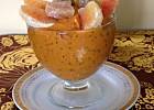 ** na lodzie - kostkach z mrożonych granatów (lekko rozgniecione + cukier drobny brązowy i suszona skórka pomar.+ mineralka).