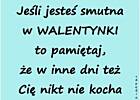 Bezkrytycznie nowości z innych krajów przyjmujemy, takie święto jak Walentynki o którym tak dużo wiemy. To święto w naszej pamięci od dawna już nam zapada, chłopak, dziewczyna, zakochani, każdy szeptem gada. Wręczyć kwiatek, prezencik, taki jedyny, wyjątkowy, poświęcić się dla drugiego, każdy zakochany gotowy. Skraść całusa, przytulić, wymienić intymny uścisk dłoni, potrafią tak zrobić tylko głęboko zakochani, jak to Oni. Samotni szukają drugiego serca, doceniają to panie, zrobią największe rzeczy przez walentynkowe kochanie. Każdy Walenty i Walentynka jakoś dziwnie tak wyglądają, tacy radośni, tajemniczy gdy razem się z sobą spotykają. Warto to święto kultywować, nie dzień ale przez rok cały, pomagać sobie, adorować wzajemnie, tego koszt jest mały. Agapis, Patrycja1 i Mariolan76 głośno mi podpowiadają, napisz o tym lajan, że One tak bardzo Walentynki kochają. Cóż mam powiedzieć, ja w takich prośbach się wręcz lubuję, od ręki wszystko opisałem, bo nasze Panie bardzo szanuję.