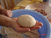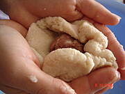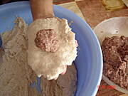 woila ja robię ciasto jeszcze rzadsze, czasami jak mi się wody chlupnie za dużo, prawie przelewa mi się przez palce, mieszam takie gorące, najpierw łyżką drewnianą trzonkiem, żeby nie chlupnął mi wrzątek, potem już są dość zimne, że można ich formować. Jeśli nie mam jajka to nie dodaję poprostu ale majeranek i czosnek to podstawa.