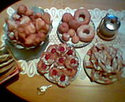 tak więc faworki pomarańczowe już upiekłam ( bardzo nie lubię faworków więc mnie nie drażnią - mogą sobie leżeć aż dzieci wrócą ze szkoły), natomiast po razpierwszy od niepamiętnego czasu nie pikę pączków- kupiłampo 2 dla mojej rodzinki od Steksona i tyle,ja zajadam w tej chwili sie tartą marchewką,a kiedy oni będą wtryniać pączki ja wtryniać będę gotowane jabłka:((( inka21