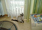 Kotka na szczęście jest domowa, nie lubi wychodzić. A teraz jeszcze ma małe to tymbardziej nie ruszas ię nigdzie. Ale Balbin. I pomyśleć że on pierwszy rok życia przesiediał w domu i jak się go z domu wynosiło to zaraz wracał. Teraz to go ciężko w domu utrzymać, a jak już nie chcemy go wypuścić to stoi pod drzwiami i miauuuuuuuuuczy niemiłosiernie, nie da się tego znieść. A wystarczy tylko lufcik uchylićto wyskoczy przez nie. Przyznam, że trochę się martwimy ponieważ coprawdaż nic do domu upolowanego nie znosi ale kto go tam wie na co poluje i co tam gdiześzjada.