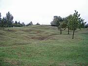 Tak wyglądają "wzgórza" wokół fortów - utworzone przez wbijające się w ziemię pociski. Trawa jest na bieżąco ścinana i wypalana, aby jak najwierniej przypominać tamte dni.