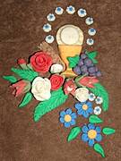 W tym roku mój synek będzie miał I Komunię św. Ozdóbka ta będzie położona na torcie, myślę, że na polewie czekoladowej, bo mi pasuje kolorystycznie. Musiałam ją ulepić już teraz, bo przed uroczystością może być różnie. Może komuś przyda się wzór. Kwiatki można umieścić również przy innej okazji ;) Nie pamiętam, kto doradził mi zabarwianie atramentem na niebiesko, ale dziękuję serdecznie! Sama bym na to nie wpadła. Pozdrowienia!!! Skolopendra
