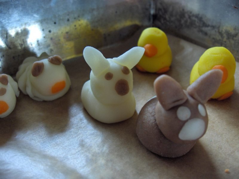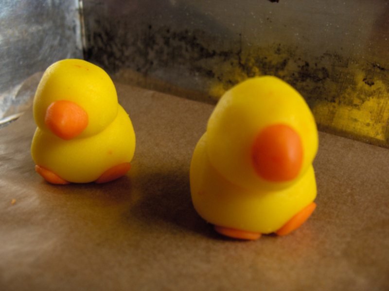 ciesze sie że się podobają. :D Kiedyś qpiłem cukierki lukrowe - były właśnie z takiej masy, ale miały taką fajną skorupkę z wierzchu. Ja swoich jeszcze nie schowałem z nadzieją, że i one taką dostaną... a tu nic. Chcąc sprawdzic, ścisnąłem jednego kurczaczka a tu... zmiażdżyłem główkę. Ale nawet juz nie warto mi ich chować bo od jutra zajmą miejsce na mazurku.