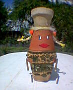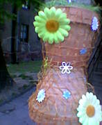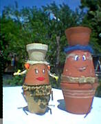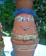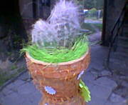 Mialam w ogródku trochę doniczek ceramicznych które nie były potrzebne i zrobiłam z nich coś takiego do ogródka. W tych pustych na górze będą stały kwiatki. I jeszce coś takiego: