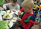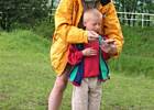 Był tor przeszkód, Mały musiał wykonać slalom taczkami, wyczyścić ponton z piasku no i oczywiście uzupełnić w 2 minuty wybudowany już zamek z piasku. Na zmęczonych budowniczych czekała zupka ale też i nowe zadanie Mały dzielnie smarował bo przecież na stole obok czekały.......