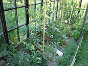 No i jeszcze coś - nie lepiej zamocować i przeciągnąć żyłkę u góry szklarni pod dachem, na tym przywiązać mocne sznurki tak, aby zwisały w dół luzem i jak u mnie na tym poprowadzić pomidory ? Spróbuj na drugi rok ! Pamiętaj tylko, że sadzonki okręca się wokół sznurka zgodnie z ruchem wskazówek zegara. Spróbuję jutro na zdjęciach to uwidocznić. Szklarniowe sadzonki tak się "prowadzi"