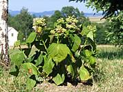 Jeżeli natomiast chcemy uzyskać odczyn bardziej zasadowy gleby w celu wybarwienia kwiatów na czerwono, możemy zastosować nawozy zasadowe, zawierające wapń lub magnez. Należy jednak uważać aby nie podnieść pH gleby powyżej 6,2. Odczyn wyższy powoduje chlorozę liści - liście stają się jasne, żółtawe, z czasem zasychają i opadają. Dlatego też dobrze jest dokonywać pomiarów pH gleby za pomocą pH-metru (zwanego też kwasomierzem). Rozmnażanie Hortensję ogrodową najlepiej rozmnaża się poprzez sadzonki zielne, które tniemy w okresie od czerwca do sierpnia, a następnie wysadzamy do skrzyń inspektowych, w których sadzonki będą się ukorzeniać. W inspektach sadzonki muszą spędzić cały rok - na grządki można je posadzić dopiero drugiej wiosny. Ten sposób rozmnażania hortensji jest zalecany również w przypadku wszelkich odmian wielkokwiatowych.