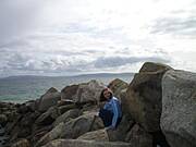 A to już plaża w Galway. Mnóstwo kamieni i bardzo silny wiejący od oceanu wiatr.