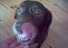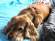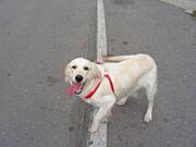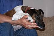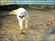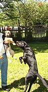 zabawa z labladorem już wykończyła mojego psa i schronił się na ręce swojego pana