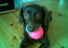 Przynosi swoją ukochaną zabawkę , którą my nazywamy "farfocel" i zaczyna się zabawa. A na zdjęciu szczęśliwy pies :