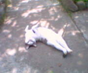 Bardzo żałuję że nie mogę wstawić zdjęcia mojego ukochanego "żywioła" - Kaktusa - wyżła niemieckiego szorstkowłosego. Niestety nie mam aparatu cyfrowego lecz analogowy. Ostatnio mój Kaktus jest b.smutny, gdyż zdechł mi dwa tygodnie temu, jego towarzysz - doberman - Gero. Kaktus był przy nim chowany od szczeniaczka. Widać jak bardzo tęskni. Nie chce jeść. Wczoraj wpadłam na pomysł aby stawiać dalej dwie miski i do obu dawać jedzenie. No i pomogło.