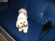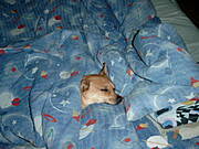 A oto "święta kanapa" na którą absolutnie nie wolno mu włazić....zdążyłam podścielić koc...