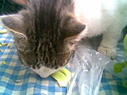 Ave -mam nadzieje, że nie znajdzie tych kotków... Mama wprawdzie nie miałaby nic przeciwko (uwielbia zwierzaczki) ale Tato by chyba "miał za złe". A tak wygladał kot po zjedzeniu tej kapusty