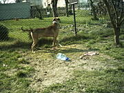 Nie sądziłam , że mój poprzedni wątek o moich najbardziej oddanych przyjaciołach, wzbudzi takie zainteresowanie!! Bardzo się cieszę!! Tamten wątek zaczęłam od mojej małej Pegi ale zakładając go nie wiedziałam jeszcze że będę adoptować psa ze schroniska. To było moim marzeniem ale właściwie nie do zrealizowania. Nie wiedziałam również że to będzie mastiff ang. Mój mąż był przeciwny więc nie rokowało to powodzenia... a jednak!!!! Szukałam bardzo długo przez internet po schroniskach, w hodowlach, na Allegro itd... w końcu zapisałam sie do molosów (zrobiłam to dlatego że koniecznie miał być podobny do mojego bullmastiffa Bango, którego tak bardzo kochałam - a on był molosem). Zupełnie przypadkiem jedna dziewczyna z dogomanii wstawiła wątek o Leo i jego zdjęcie - opis był bardzo porywający za serce, aż się pobeczałam jak czytałam jego historię ( w tym momencie nie miało znaczenia że był molosem, gdyby był kundelkiem to też byłby mój). No i zaczęła sie lawina zdarzeń.... Nie sypiałam po nocach, łaziłam jak głupia bez określonego celu, myślałam i myślałam.. Mąz mnie musiał bacznie obserwować, bo po kilku dniach spytał czy bierzemy tego biednego psa!!! Jak wchodziłam na molosy, czy str schroniska w Zgierzu ( tam był mój pupil) to mąż zaglądał mi przez ramie czytając co mi odpisują na moje pytania. Decyzję podjeliśmy w ciagu tygodnia. Bardzo sie bałam czy dam rade, naprawde, mimo że tak bardzo kocham wszystkie zwierzaki to nie wierzyłam w swoje możliwości . To Leo w czasie gdy był w schronisku. Był chudy, miałam wrażenie że skóra jest przyrośnięta do żeber. Jego historia jest bardzo smutna - mężczyzna który był właścicielem Leo dostał pracę w Anglii i musiał wyjechać, zostawił psa swojej sąsiadce, płacąc jej 20 zł dziennie na jego utrzymanie. Pani niestety każdą sumę przpijała a psa wsadziła do klatki 1m/1m i pies tak sobie rósł, nie mógł się poruszać więc skakał, jeść dostawał może raz na tydzień. Inni sąsiedzi wezwali policję i tak Leo trafił do schroniska. Nie będę opisywać jak długo kontaktowałam sie z Medorem( schronisko) bo szkoda czasu. 4 marca Leo został przywieziony do nas. Jak wysiadł z samochodu to pocałowałam go nos(spory nos),oczywiście pobeczałam się a jakże. Pies był spokojny ( w miare). Drugi i trzeci dzień też jakoś przeżyliśmy. Następne dni były coraz gorsze... i doszło do tego sądnego dnia kiedy pies mnie zaatakował w ogrodzie ( ręce pokrwawione, sine, nogi też sinie), zaczełam krzyczeć i mąż usłyszał, przybiegł szybko i ta moja chudzina rzuciła sie na tego psa całym ciałem i go powaliła - no i teraz jest jego Panem a ja?? Tyle się poświęciłam, karmniłam, kąpałam, dawałam smakołyki.... a on mnie gryzł!!! tak wyglądał mój ogród przekopany przez Leo, tragicznie. Oj!!! chyba za dużo opisuje tą swoją historie, w końcu któryś moderator mnie pogoni!!! Jeszcze tylko troche napisze!! Podjęłam decyzję o oddaniu psa!!! No i Ci z molosów skontaktowali mnie z Aldoną (Pani która układa psy), zrobili to żeby mi pomóc, no i udało się.Wy też mieliście swój udział w tym żebym nie oddała Leo, podtrzymywaliście mnie na duchu i jestem Wam wszystkim bardzo wdzięczna.Pokochaliśmy się strasznie z Leo ale ile to mnie kosztowało to tylko ja wiem. Teraz kilka zdjęć tego mojego bandyty!!! te zdjęcia są sprzed 1,5 miesiąca, resztę wstawię pózniej jak wgram z aparatu. Teraz Leo wygląda inaczej, jest potężny, przytył ( na początku w pierwszym tyg zjadł 15 kg karmy nie licząc warzyw , mięsa). Reszta bedzie póżniej.......