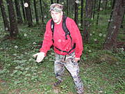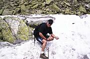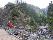 Jacek przy strumieniu. Pierwszy dzień pobytu i już wycieczka nad Ścieżkę nad reglami (po 14-godzinnej podróży w pociągu).
