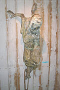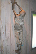 W tylnej części ściany znajduje się Relikwiarz z niedopalonymi szczątkami ludzkimi ze stosu całopalnego - miejsca, gdzie na przełomie lat 1944-1945 hitlerowcy palili ciała ofiar."
