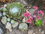 Jeżeli chodzi o rojniki to te zielone mam z lasu, a resztę kupiłam w Castoramie. Wystarczy, że posadzisz je w zwykłej ziemi co masz w ogródku i obłożysz skałkami (też mam z lasu, u mnie mnóstwo łupka jest, co się ładnie prezentuje z rojnikami) mam małą rabatkę z samymi tymi roślinkami. 'Roją' się bardzo szybko. Wystarczy, że będziesz nowe kuleczki oddzielać od czasu do czasu od matecznej roślinki i rozsypywac obok. Szybko zapełnią ci wolne miejsca. Rojniki z lasu zakwitły mi po 2 latach chyba, ale pięknie to wygląda (potem roślinka zamiera, ale tworzy tyle nowych, że strata żadna) a te okazy ogrodowe kwitną niektóre w tym samym sezonie.Zrobię fotkę rabatki i też wkleję zaraz. Pozdrowionka.....