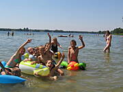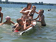 Na drugą wyieczkę 17.07.2007r. wybraliśmy się nad Jezioro Białe położone pare kilometrów od Płocka. Dzień przed wycieczką bardzo intensywnie przygotowywaliśmy się do niej. Zabraliśmy "sprzęt" pływający i rzecz jasna piłki- zarówno siatkową, jak i nożną:)