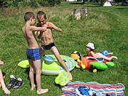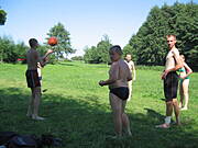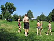 Wyjściom z wody towarzyszyły rozgrywki sportowe: - w piłkę nożną, na porośniętej polanie trawie